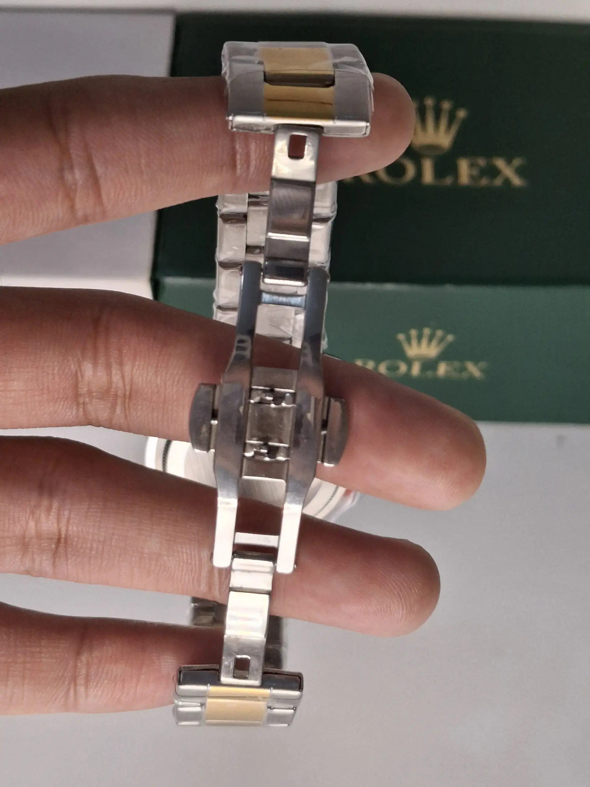 The Oyster Perpetual Submariner Date in Oyster steel and yellow gold with a bezel insert in black ceramic and a black dial with large luminescent hour markers.